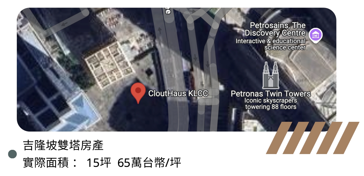 - 地標雙塔附近住宅價格:位於雙塔附近的高端住宅,價格可能達到每坪65萬台幣
